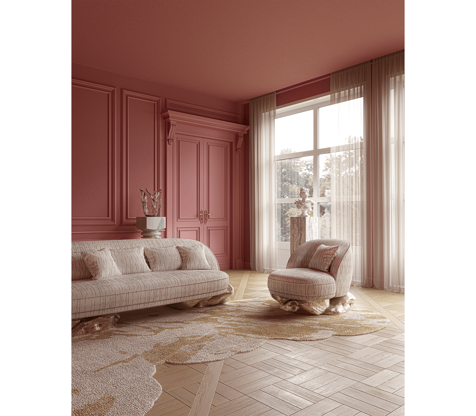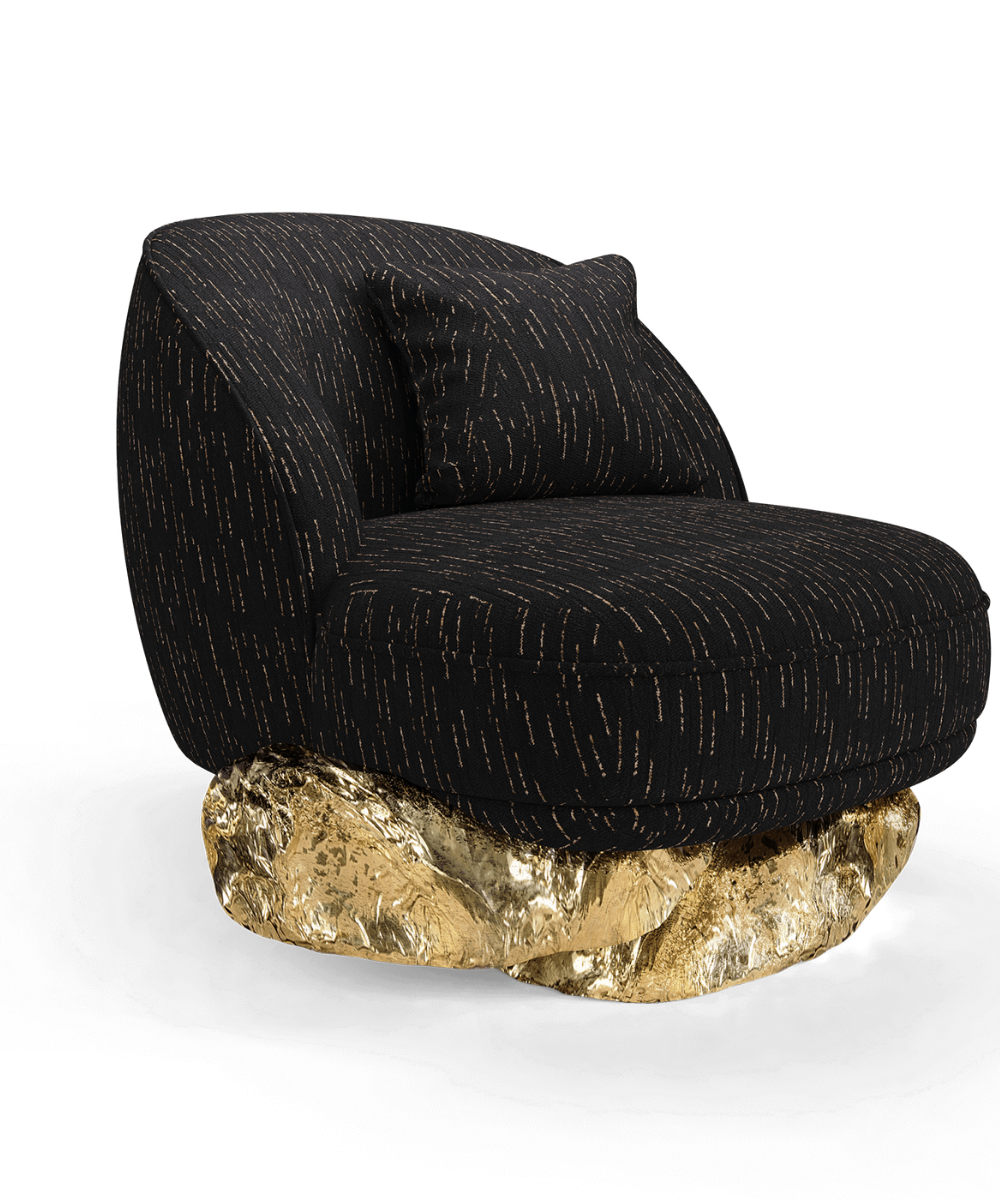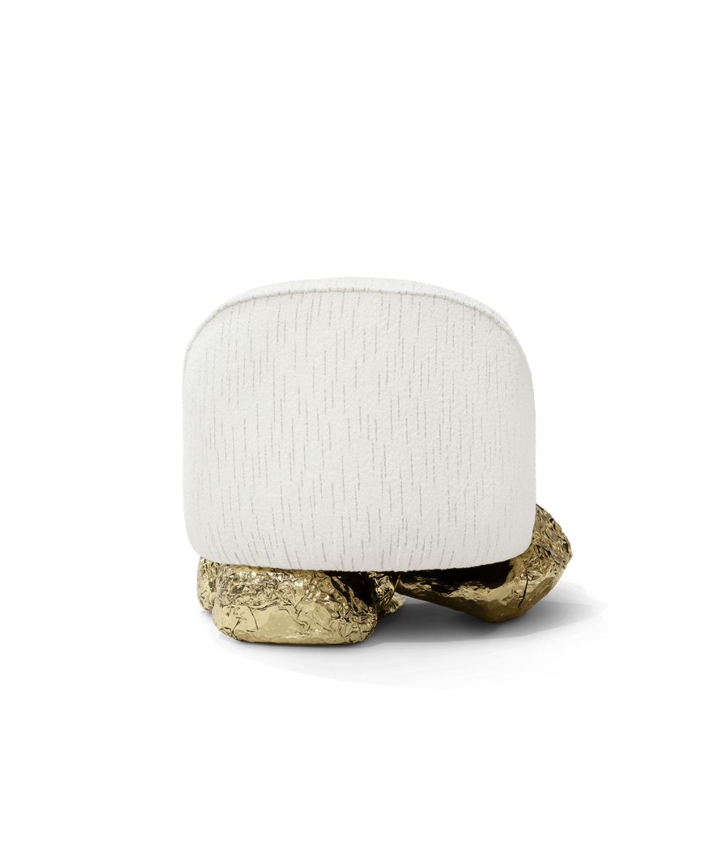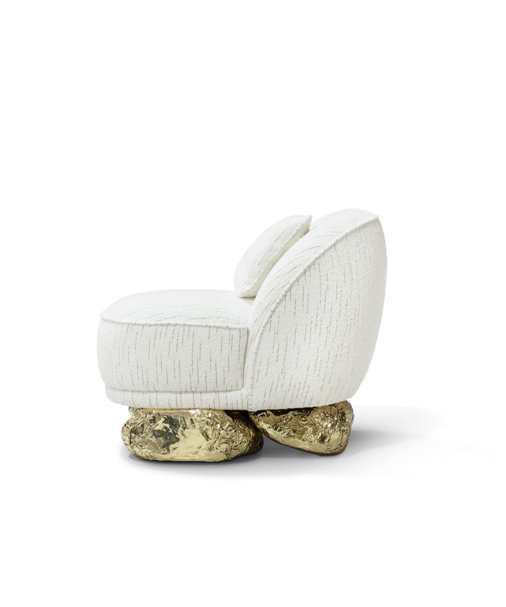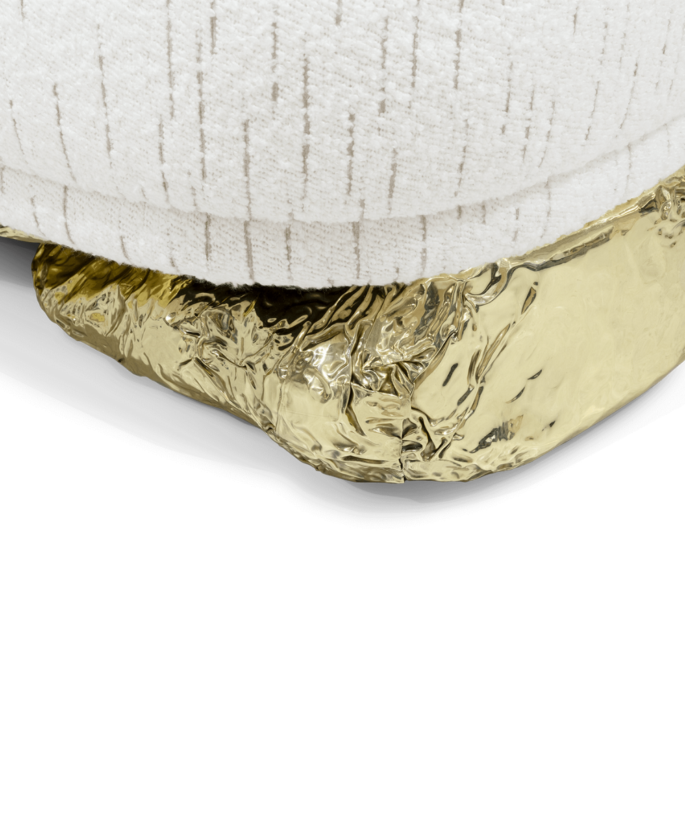 This armchair nestles on an unexpectedly curved golden base drawing its essence from the dramatic cliffs of Angra do Heroismo on the Azores island in Portugal. As you sink into the plush cushions of this armchair, you’re not just sitting; you’re embarking on a journey through design and natural beauty. A unique piece that is an invitation to elevate your space and encapsulates sophistication paying homage to historical landscapes and contemporary aesthetics.
